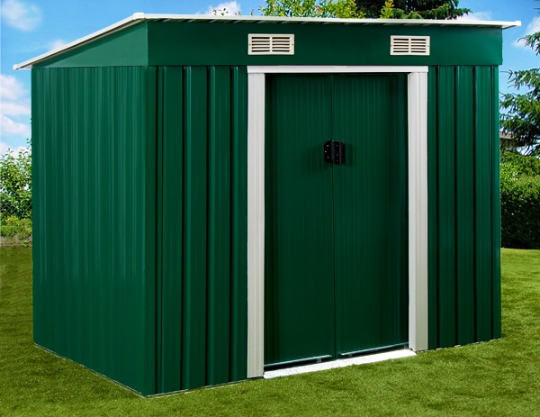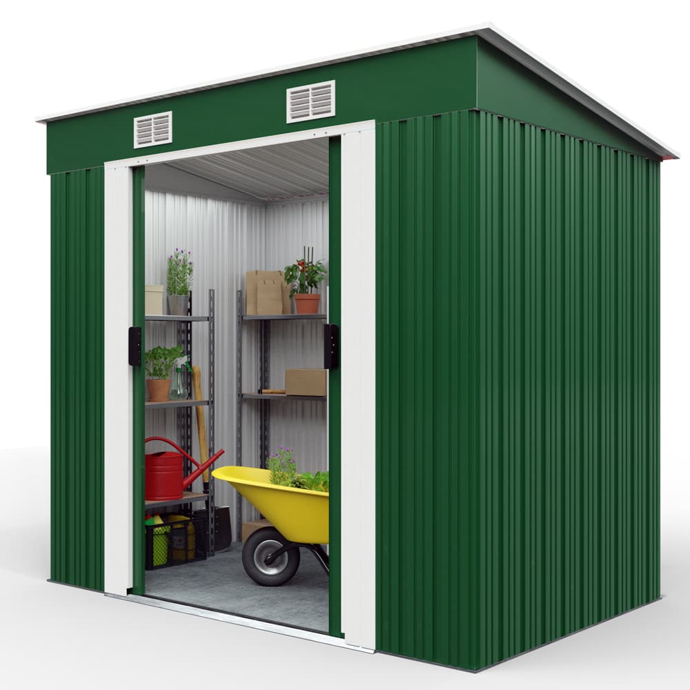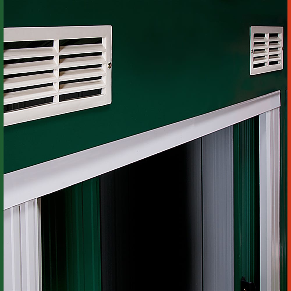 Zahradní domek nabízí dostatek místa pro kola, nářadí a jiné zahradní potřeby. Zahradní domek má také posuvné dveře, větrací otvory na vrchu a je dodáván se soklovou lištou.