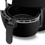 V horkovzdušné fritéze se dají jídla připravovat bez tuku nebo s nízkým obsahem tuku. Dokonce ani na hranolky netřeba olej k tomu, aby byly chutné a křupavé. Teplota se dá přitom nastavit naprosto přesně.